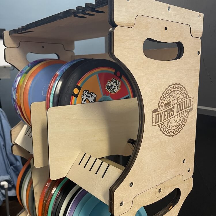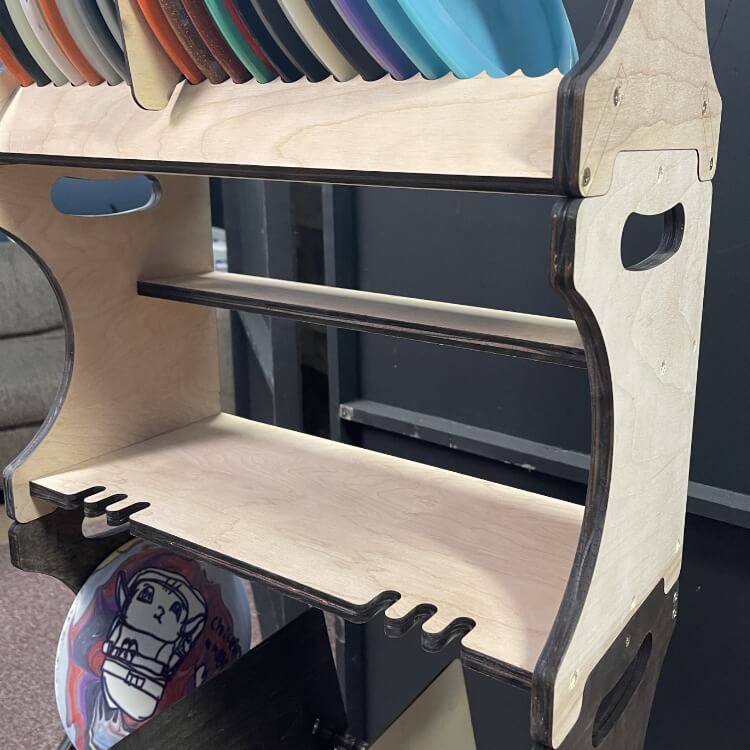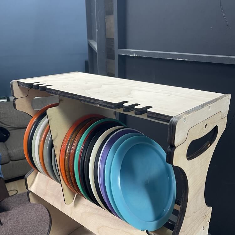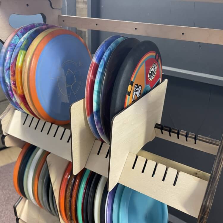 Crafted from sturdy ½” plywood and designed with our signature slotted divider system that hold your plastic tight, this isn’t some cheap shoe rack or DIY PVC disaster. Oh no. This is disc storage with curves. It’s stackable. It’s modular. And yes, it comes with slot dividers that slide in nice and stay put.