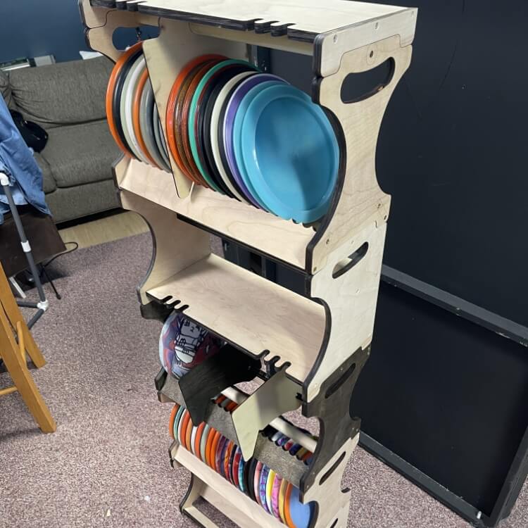 Tired of tossing your plastic into a bin like it’s laundry day? The Stacked Rack is here to give your discs the support they deserve with curves in all the right places.